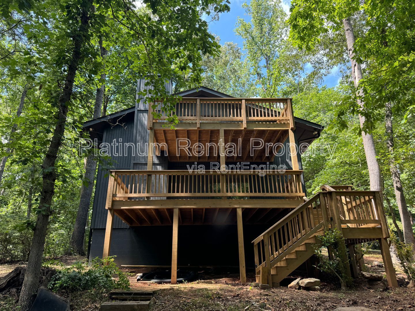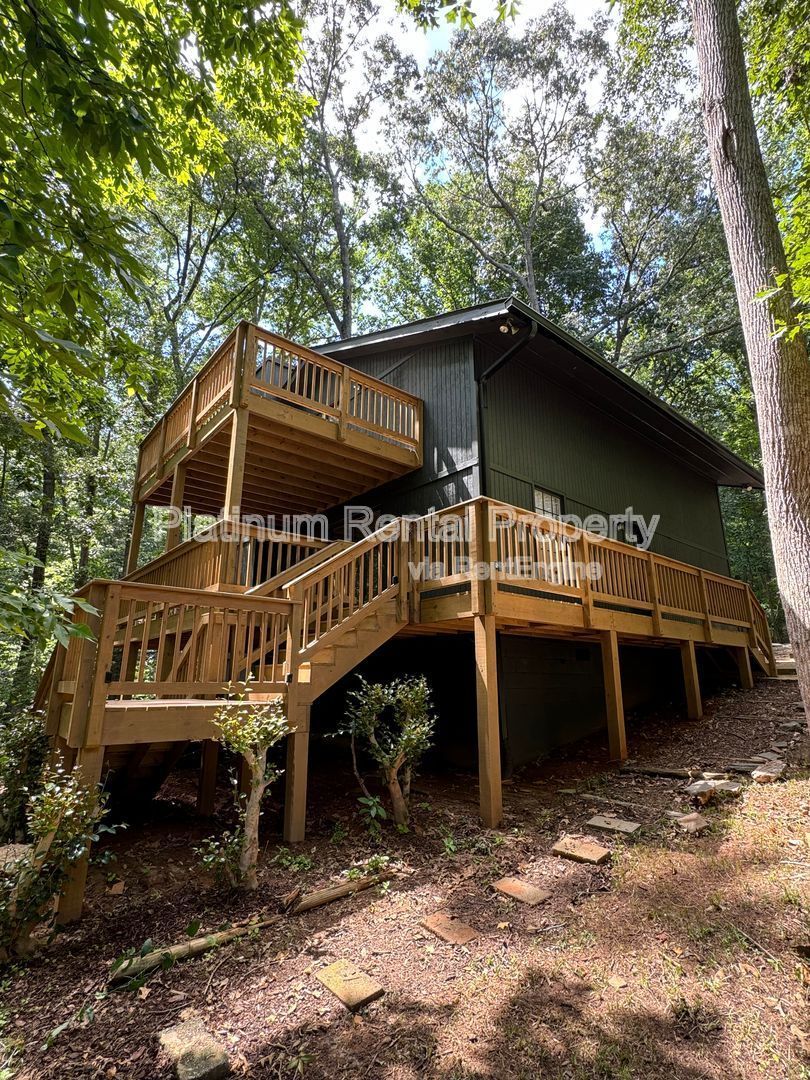 Completely renovated, better-than-new 4 bedroom home near Lake Lanier with NO HOA fees or restrictions. Multi-level porches overlooking the private wooded back yard that leads to the lake. Enjoy the wide-open floor plan looking into the dining and living area graced with new lighting and hardwood floors. Renovated kitchen with all NEW stainless appliances. Beautiful stone fireplace in the family room. Beautiful, brand NEW wood flooring throughout the entire home. 2 bedrooms and 1 bathroom on the main level, and 2 bedrooms and 1 bathroom upstairs. Updated bathrooms with modern and sleek countertops, fixtures and lighting. His-and-Hers walk in closets in the master bedroom. Private balcony access from the master bedroom, perfect for morning coffee or evening sunsets. Property is less than 1.5 miles to Lake Lanier Long Hollow Park with picnic area, beach, and boat ramp with paved boat trailer parking lot. Zoned for Forsyth County schools including the new East Forsyth High School.